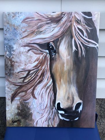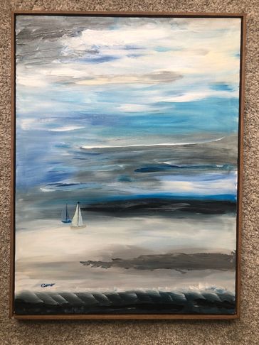 my very first painting after taking an acrylics class in January of 2018 . An 18x 24 inch acrylic on stretched canvas