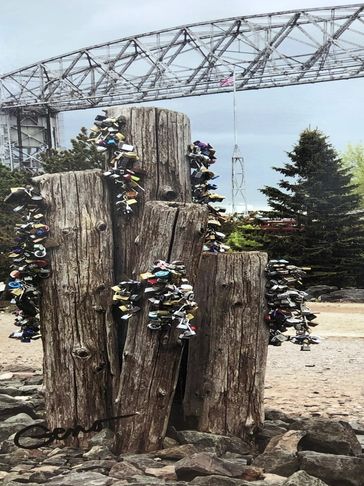 This remarkable collection of locks which symbolize relationships, has suffered the lake Superior storms which caused a rebuilding of the lake walk. I am so glad I was able to record this scene.